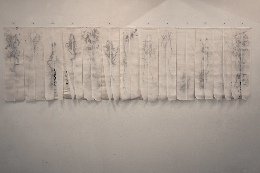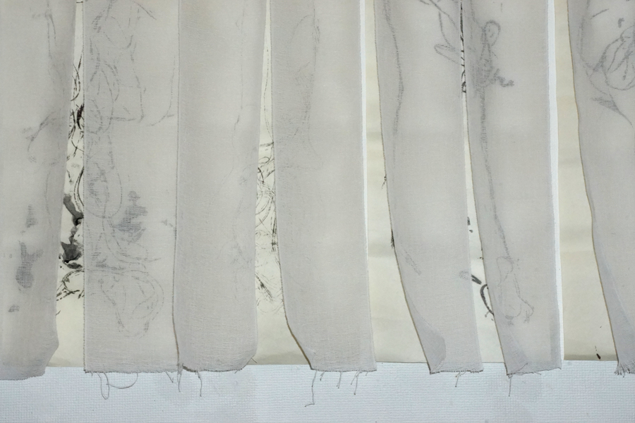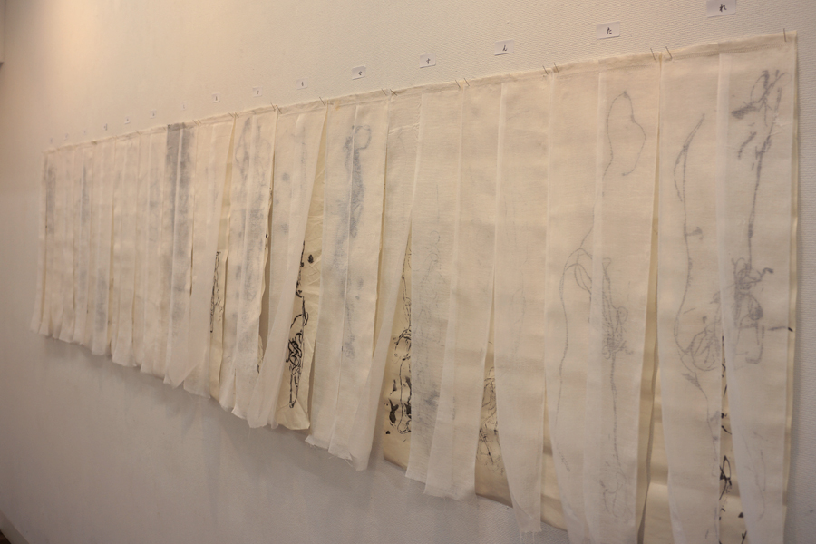 I made the line of branches crawl in the narrow space. Like footprints of dogs.