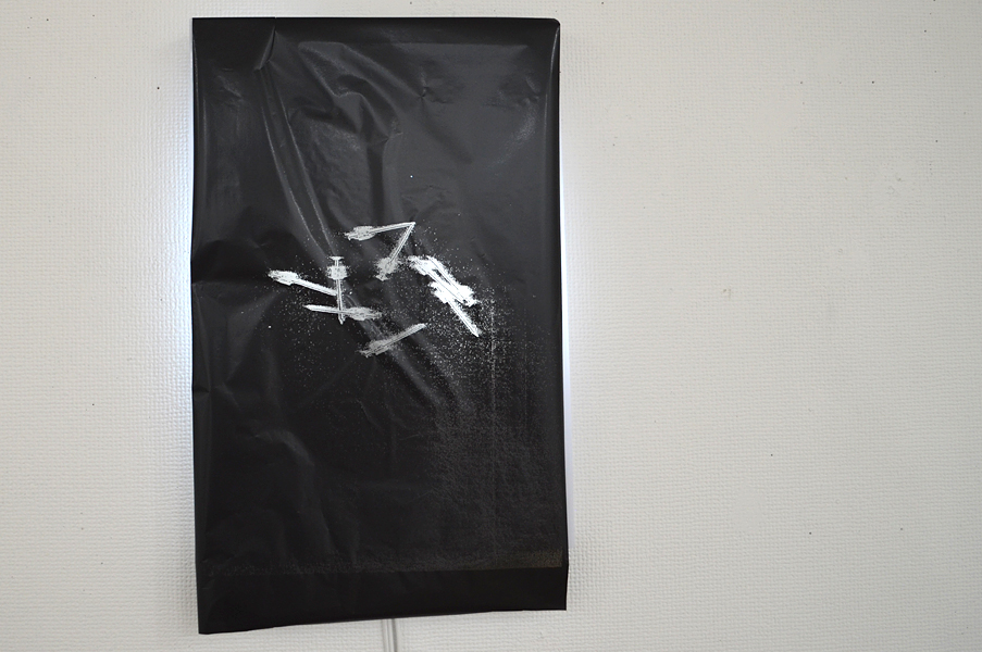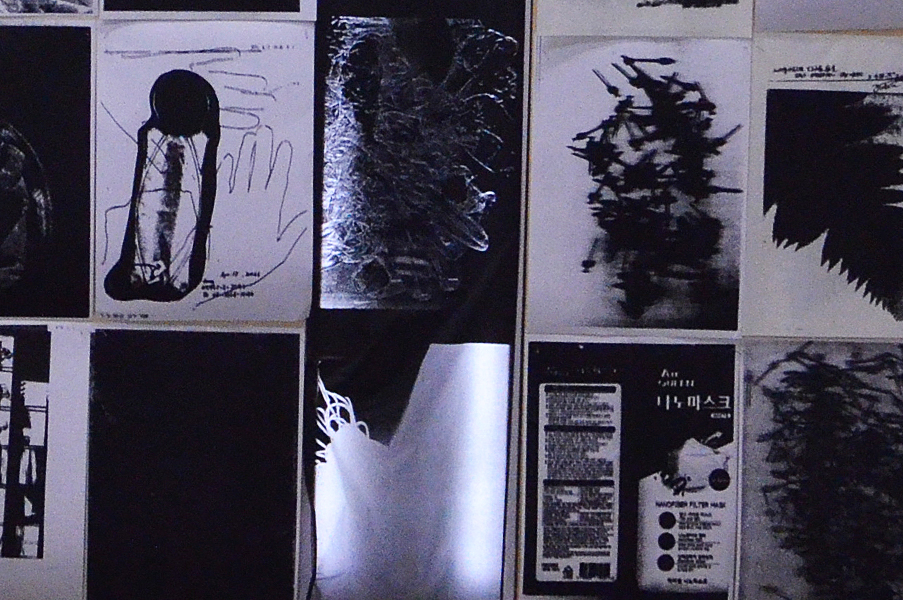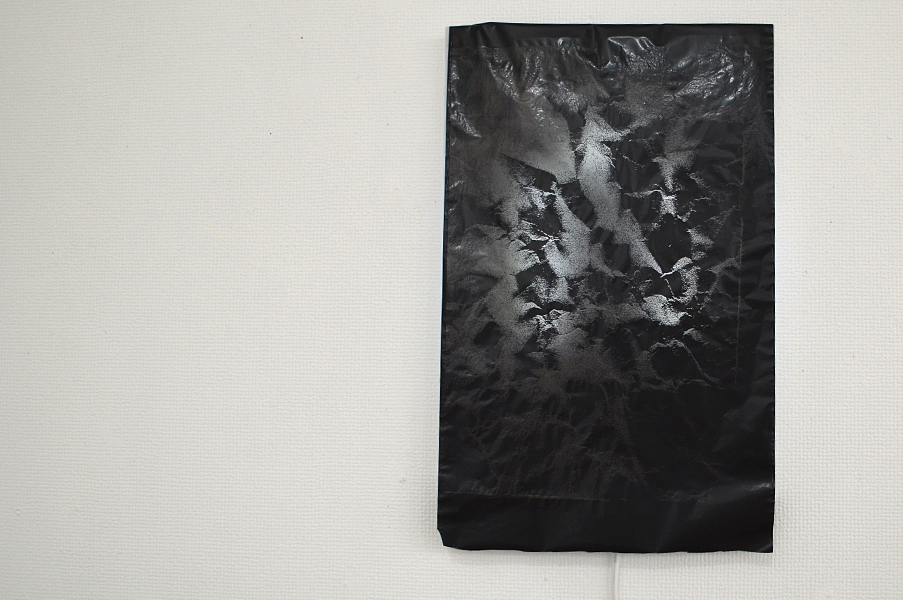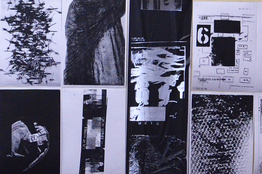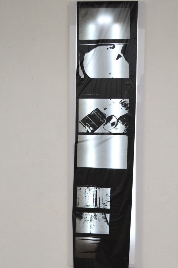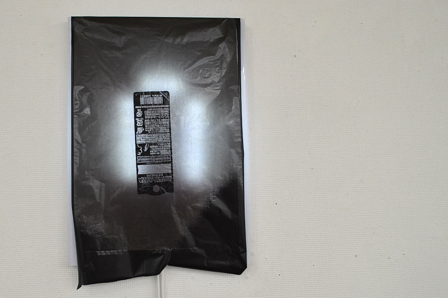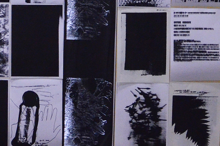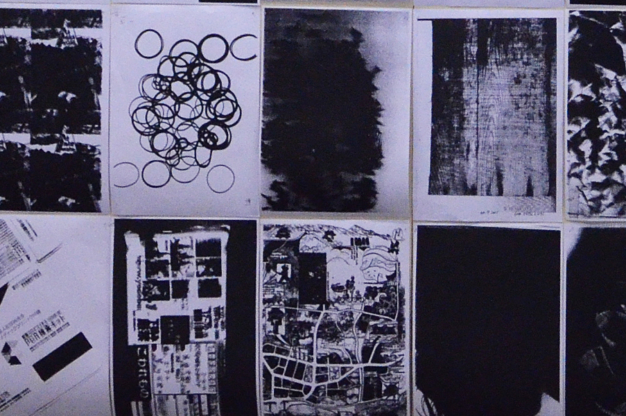2人展では、FAX電話を会場と外部と接続手段の一つとして置いた。このFAXは「インクリボン」を使うものである。タイプライターや、ワープロ専用機に使われたカーボンリボンは、機械そのものが少なくなる中にあって、インクリボンのFAX電話はいまだ現行機種でもある。インクリボンをフィルムに蒸着させたカーボンを紙面に定着させる過程は分かりやすい。印字するときの機械音も過渡期末期ならでは懐かしき響きを奏でる。
