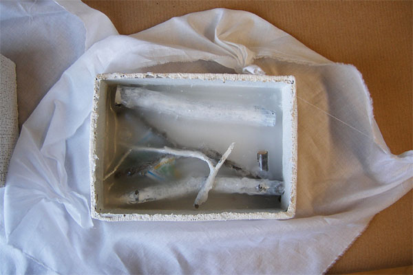 Things which I encountered the last of 2007, were sealed into candle wax. Then a New Year's card for 2008 was put in a plastic bag.