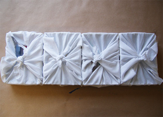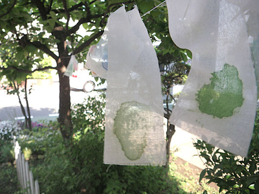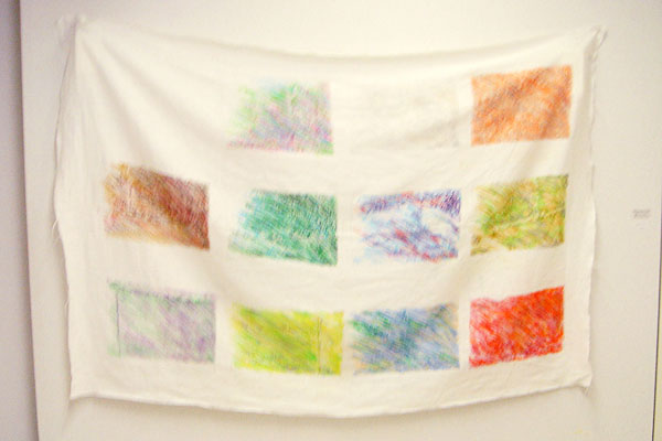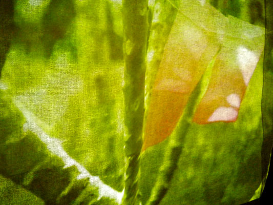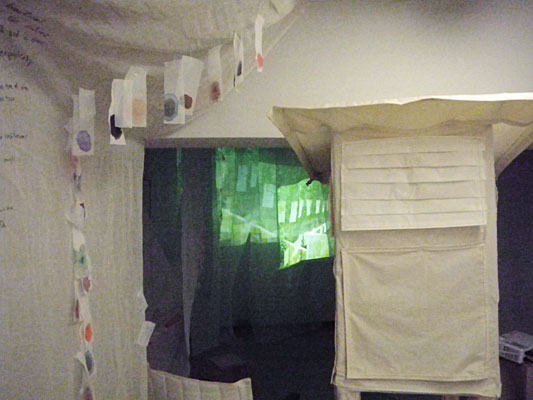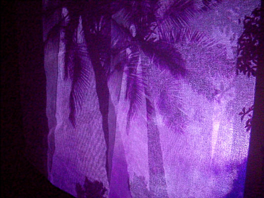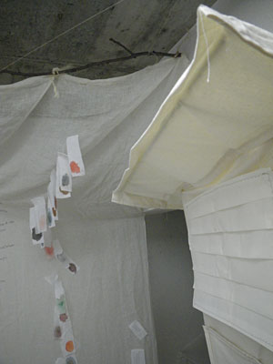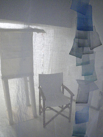 プロジェクターの光は、寒冷紗の数枚を透過し、寒冷紗の作品を映し出す。
