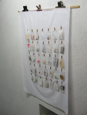 なるべくの、創作を排除して、その年に私を通過したものの断片をその記憶とともに、プラスチックバッグに入れ、美術館の隅に並べてみた。