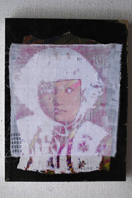 Visage I, 2009: I was born in spring, 1951. "Record-Vestige" of photo albums from our house eventually heads to memory.