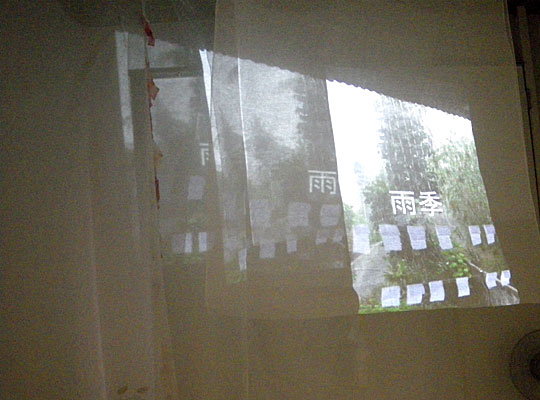 1)ジョグジャカルタで制作した作品上に、ジョグジャカルタの展示の様子を映写した。