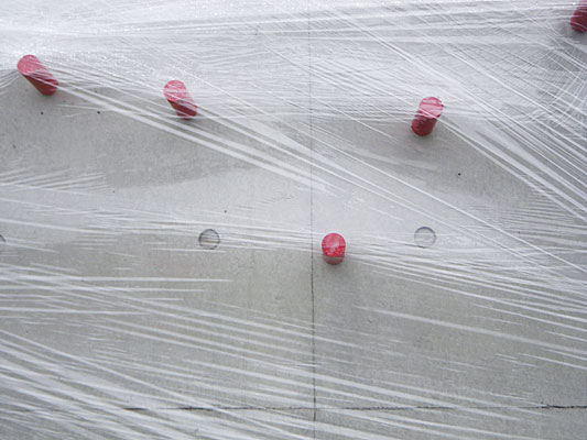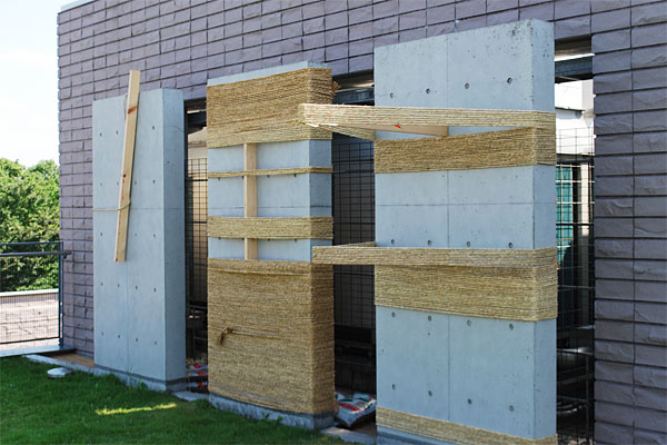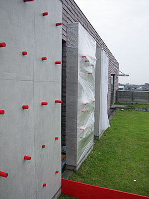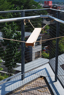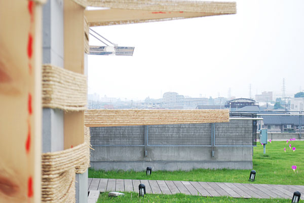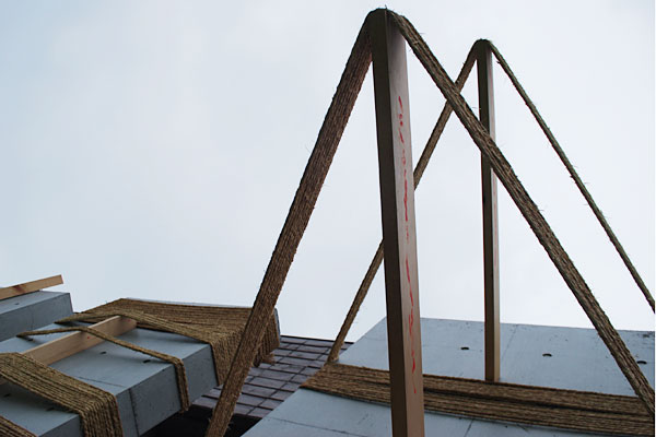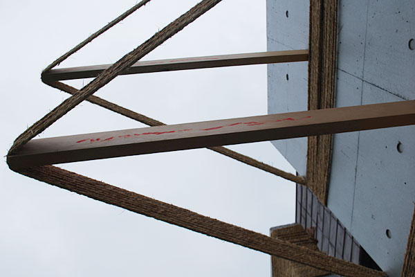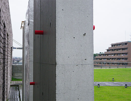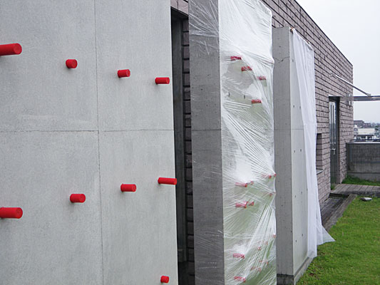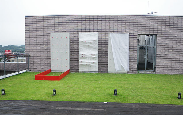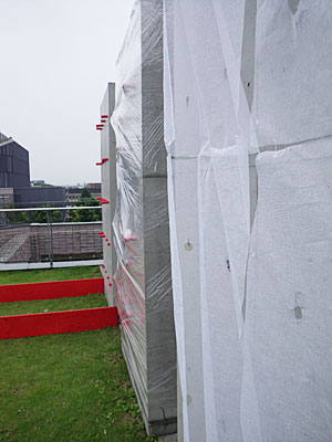 - There are three concrete walls on the roof top where I would use for "Tied Up" next year. These stand there as symbol of something by my thought. Seemingly in order to hide the appliances or air conditioning, the presence of the concretes exceeds far the intention of the architect.