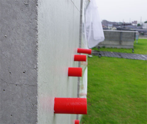 I researched, there is a tool used to connect the mold to make the concrete walls. The tool is called "MOKKONN" (Japanese pronunciation for Con Thurs, Gong Tree or Tree Cong). "Cong" means "cone", and refers to that portion of the conical shape. It seems like that is said. Because it is the trace of "MOKKONN", my thoughts go from " the trace of cong tree to cong tree marks and finally to "MOKKONN-KON." (KON: Japanese pronunciation for cone)