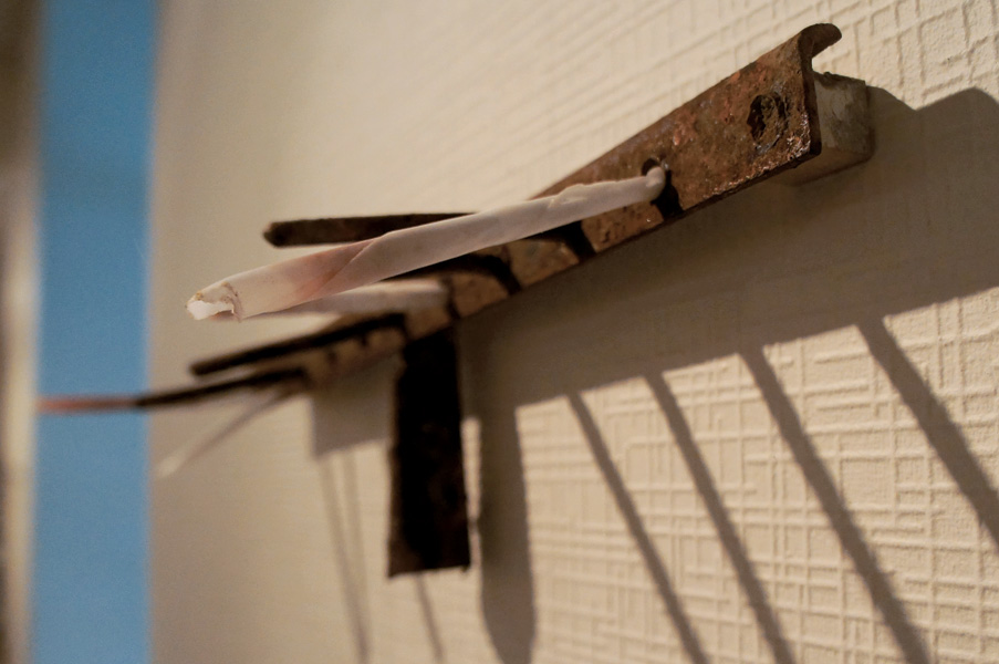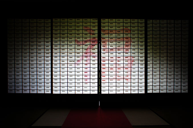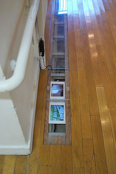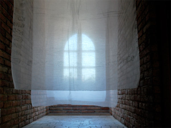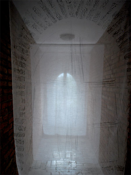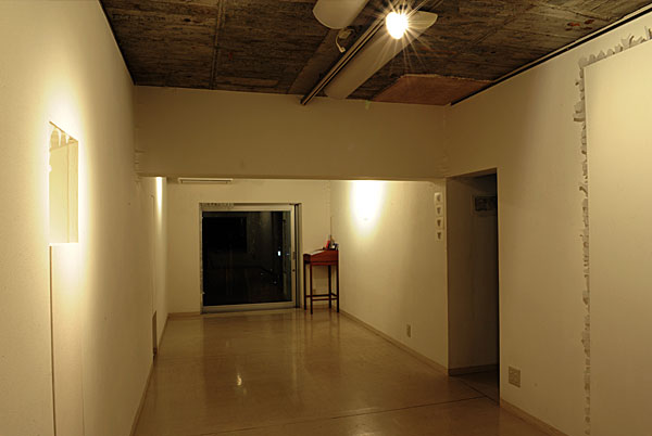 この会場は、結婚式場に使われたり、ギャラリーとしても使われる。古い建物ではないが、昔の城を模したような石を組んで作られている。 小さな窓からの昼間の光線は、暗闇に懐かしい陰影を映し出していた。