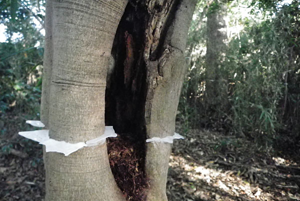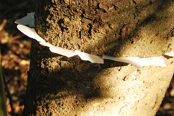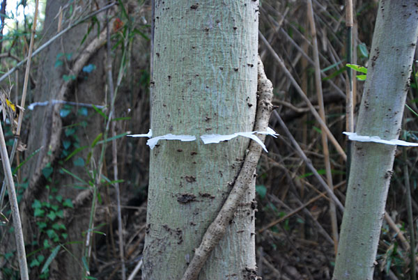 8日間ほど作業して、その数は50本を超えた。私の証に気づかず通り過ぎる人がいる。私は、此処には200センチ以上の太さの樹が6本もあることを耳打ちしたかった。