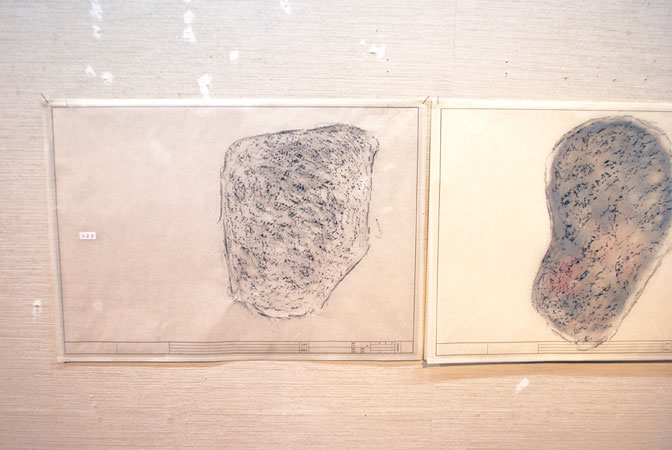 - 私は、9月24日に画廊に居た。具体的な構想がまとまった訳ではないが、この空間や時間をテーマにするならば、この石たちに仁義を欠くわけにはいかないという存在感を感じた。